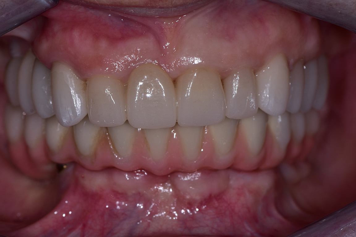 Riabilitazione "full-arch" due arcate con tecnica mista Riabilitazione "full-arch" due arcate con tecnica mista, su denti naturali ed impianti, per correzione morso profondo e ripristino funzionale, con corone in zirconio. Photogallery: